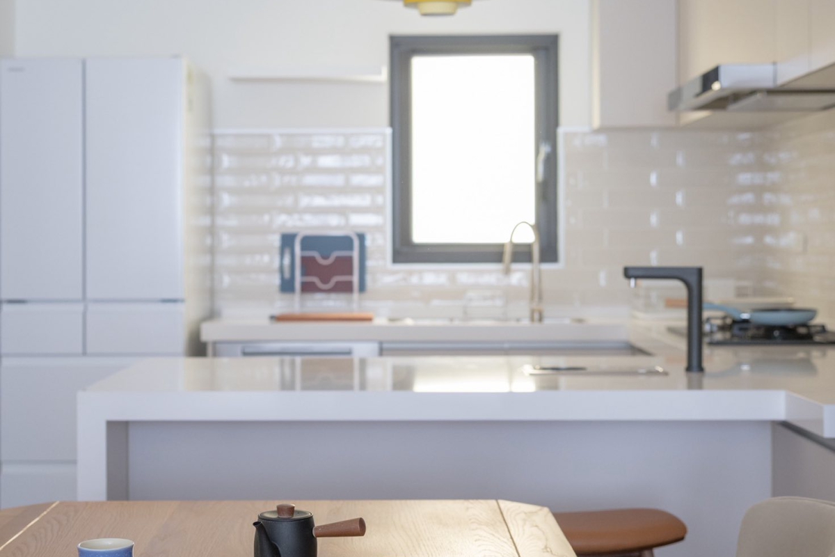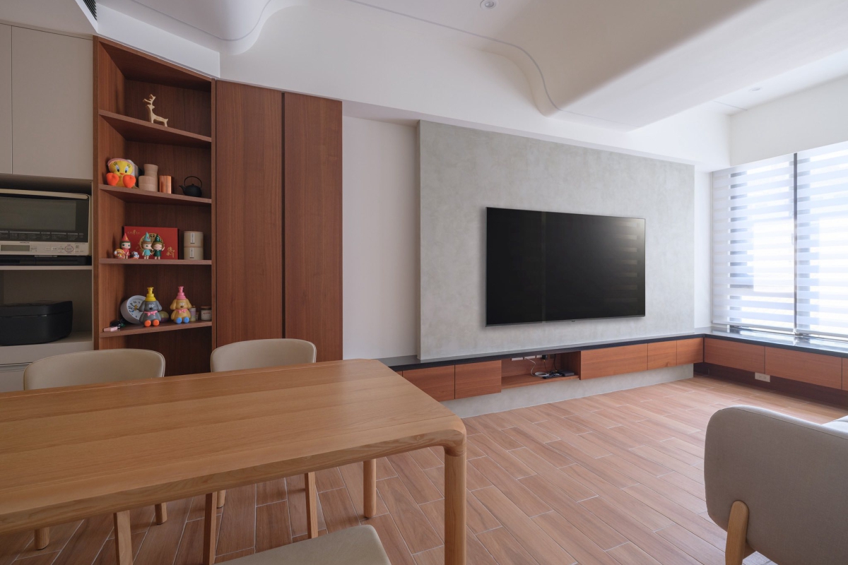 由於基地狹小,設計特別強調通風與採光的最大化利用。藉由將主要生活空間提升至二樓以上,不僅獲得更佳的視野,也有效避開街道層的噪音與隱私干擾。自然光線與風流穿梭於垂直空間之間,使住宅在緊湊的城市環境中,仍能保持明亮、通透與開放的生活品質。