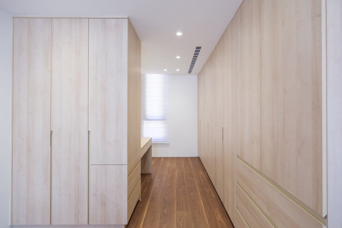 一樓規劃為停車空間,以滿足都市居住的機動需求;二樓則作為主要公共空間,整合客廳、餐廳與廚房,使日常活動集中於採光與通風最良好的樓層。三至五樓為整層主臥套房,提供充足的私密性與舒適度;六樓設有書房,作為居住者思考與沉澱的高處場域。